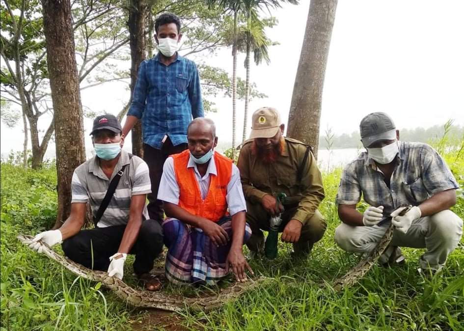 শরণখোলায় গৃহস্থের বাড়ী থেকে অজগর উদ্ধার। বনে অবমুক্ত।