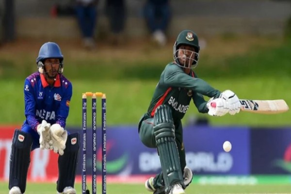 ব্লমফন্টেইনে মাত্র ১৬৯ রানেই অলআউট হয়ে যায় নেপাল। সেই রান বাংলাদেশ পাড়ি দিয়েছে ১৪৮ বল হাতে রেখে। ব্যাটারদের জন্য কাজটা সহজ করে দেন বোলাররা। টস জিতে ব্যাটিংয়ে নেমে ২৯ রানেই ৩ উইকেট হারায় নেপাল। বাঁহাতি পেসার মারুফ মৃধা চতুর্থ ওভারে প্রথম ব্রেক থ্রু এনে দেওয়ার পর বর্ষণ ও ইকবাল হোসেনও উইকেট উত্সবে যোগ দিলে শুরুতে ব্যাকফুটে চলে যায় নেপাল। চতুর্থ উইকেটে দেব খানাল ও বিশাল বিক্রমের ৬২ রানের জুটিতে খানিকটা ঘুরেও দাঁড়ায় তারা।